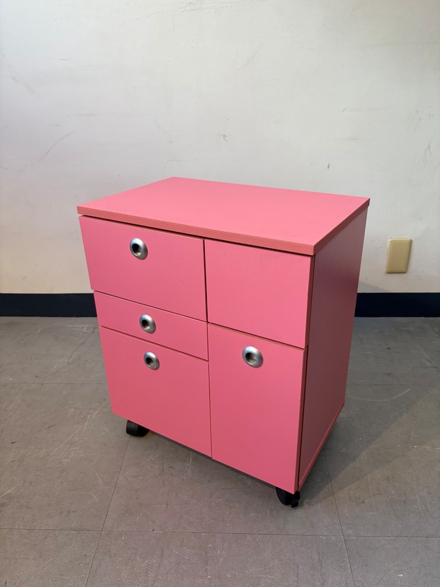 SIZE:W45 / D29 / H53 ・ CONDITION:B(上段・中段が開けにくい時がございます) ・ 円筒形のフォルムが特徴的なヴィンテージ3段チェスト。 一般的な四角い収納とは異なり、 置くだけで空間にアートワーク的なリズムつくります。 オブジェのように存在する家具。