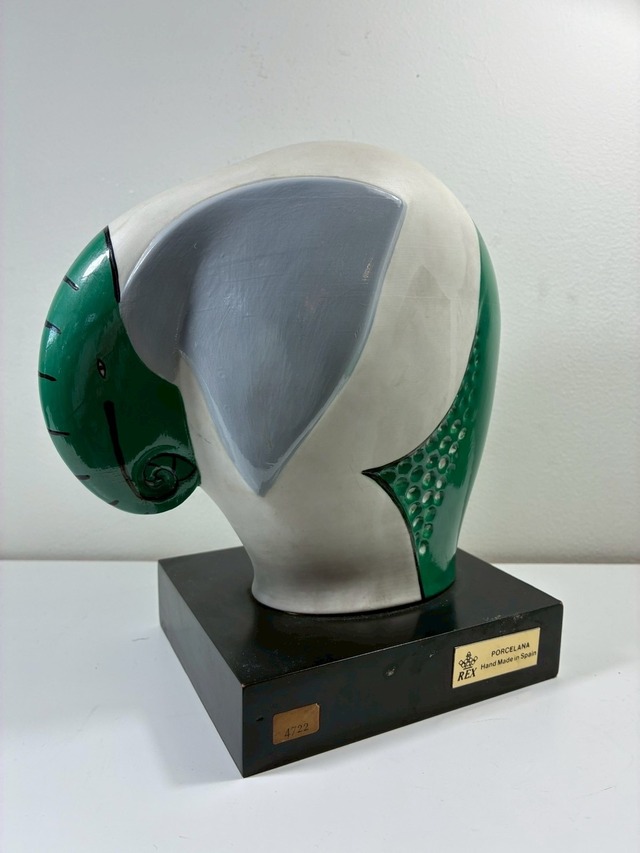 SIZE H21 / W14/ D12 ・ Condition B+ ・ スペイン「REX Porcelana」製、ハンドメイドの陶器製エレファントオブジェ。 グリーンとグレーの抽象的なフォルムがモダンな佇まいを醸し出す一点。 アートピースとしてもインテリアのアクセントとしても映える存在感です。
