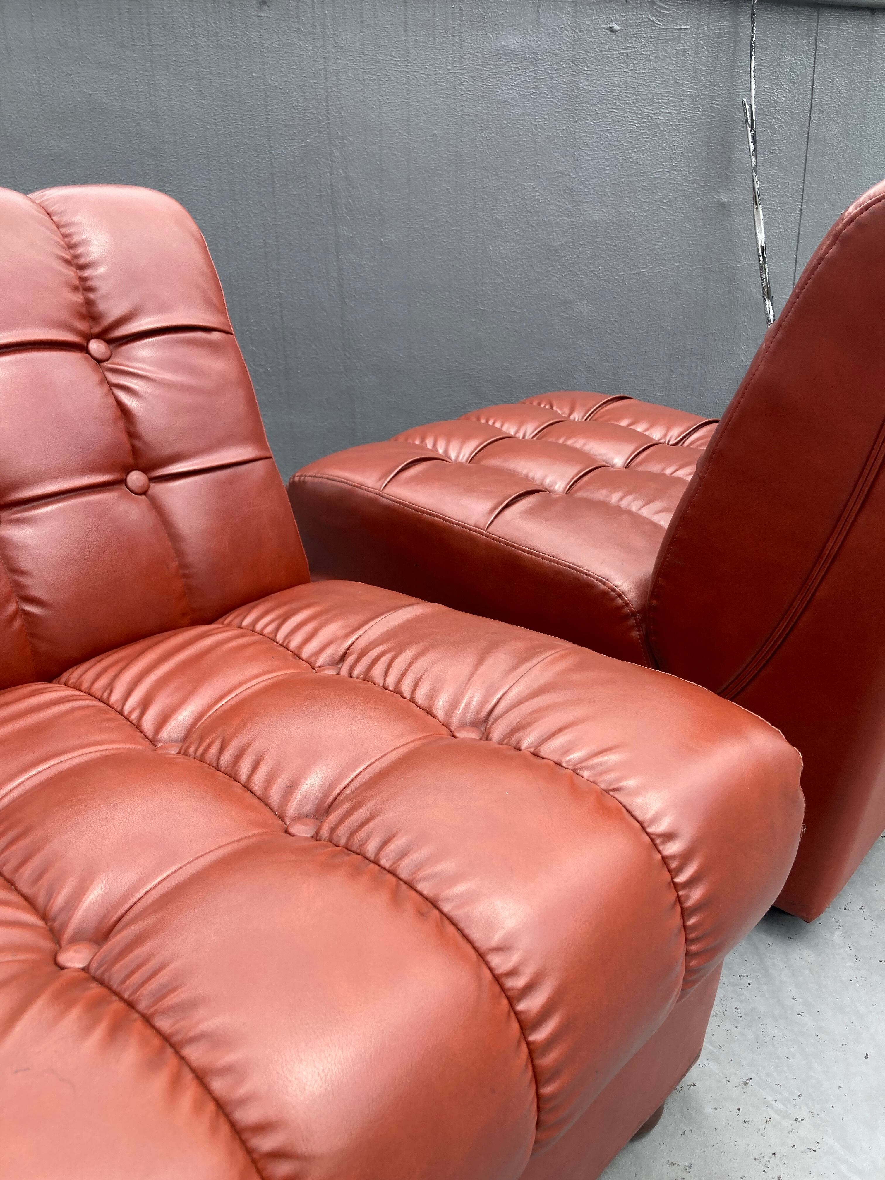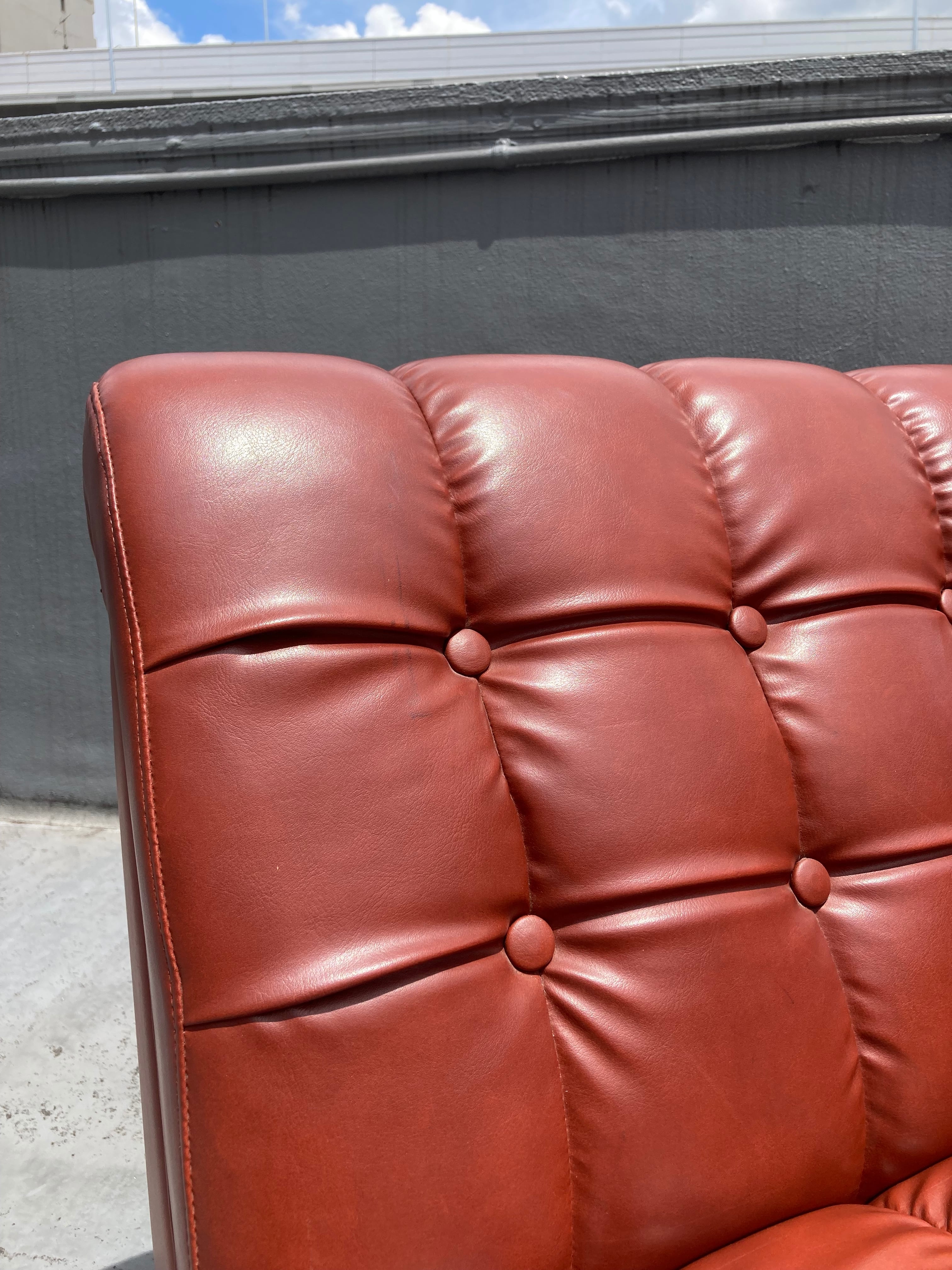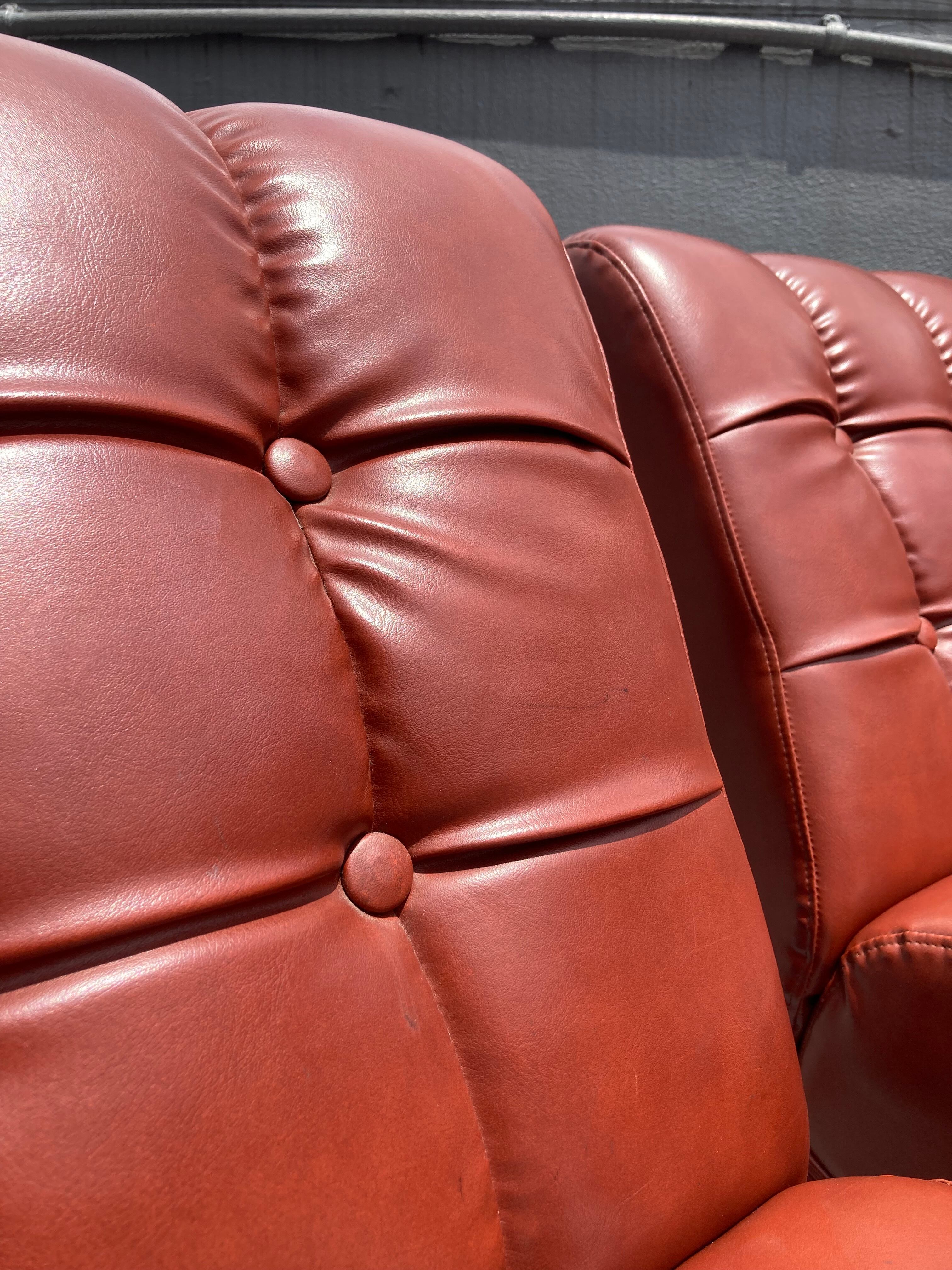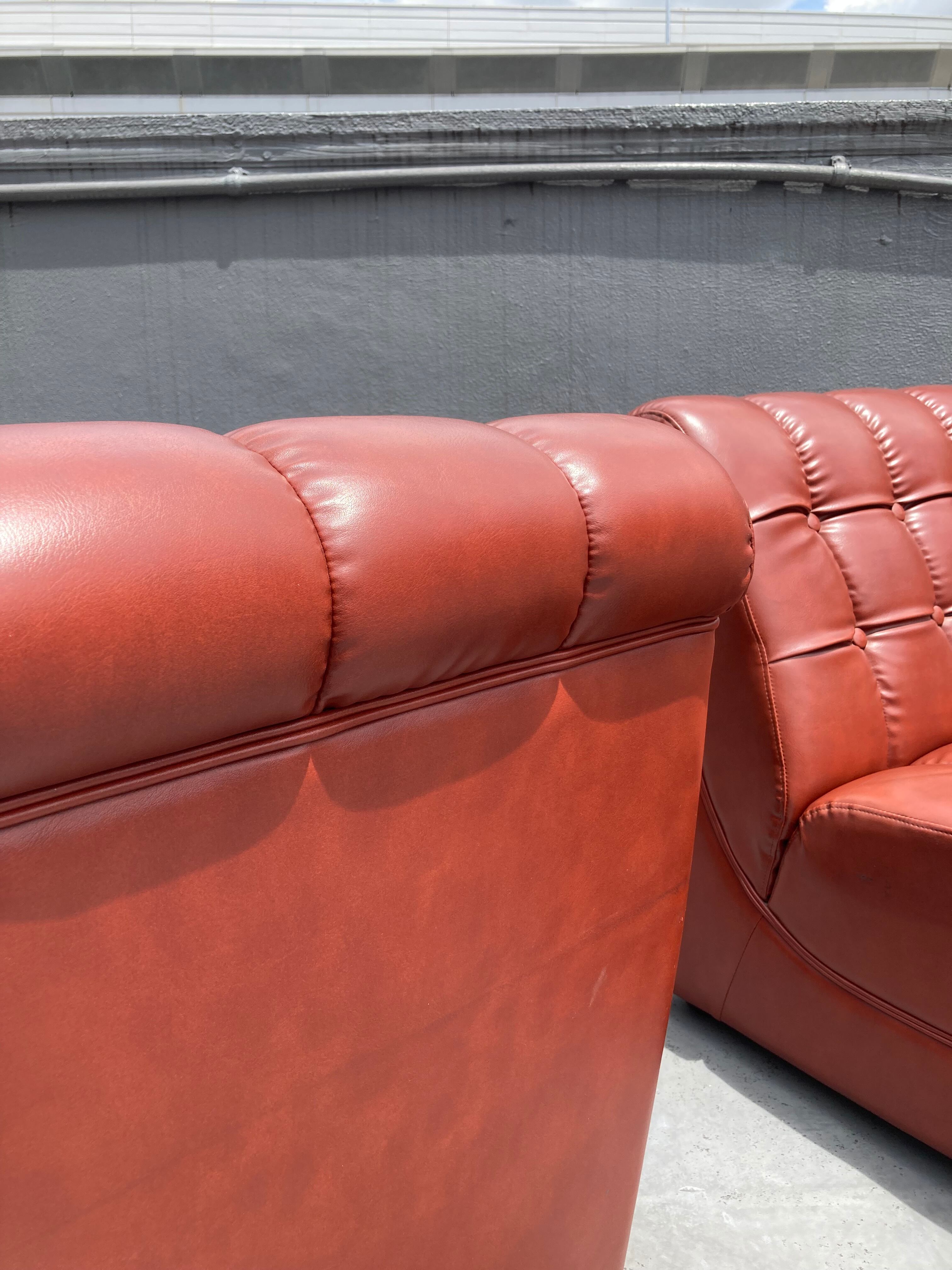 本革レザーのカリモク1Pソファを2つドロップ。1脚ではもちろん2脚つなけで2Pソファのようにご使用いただいても