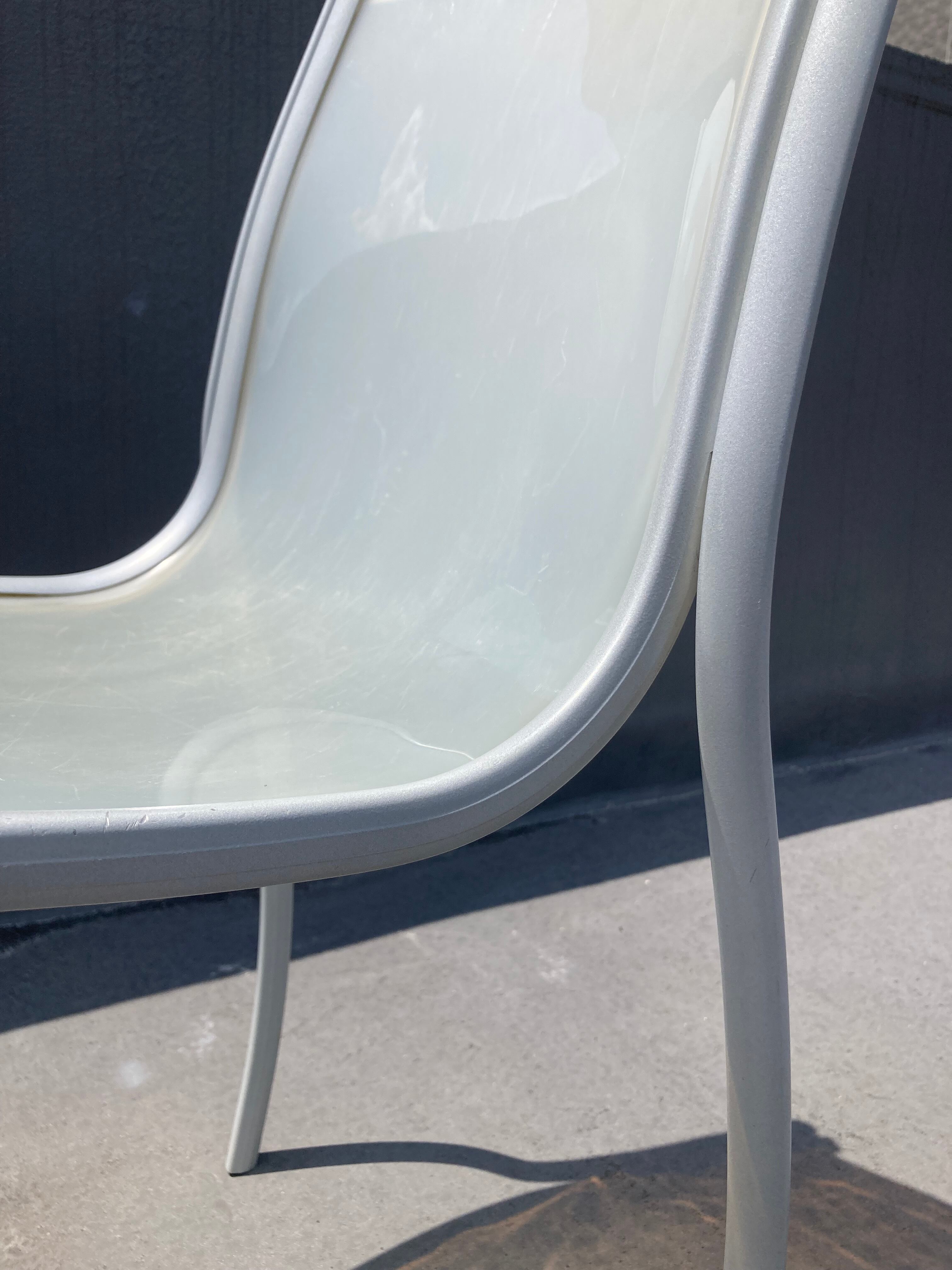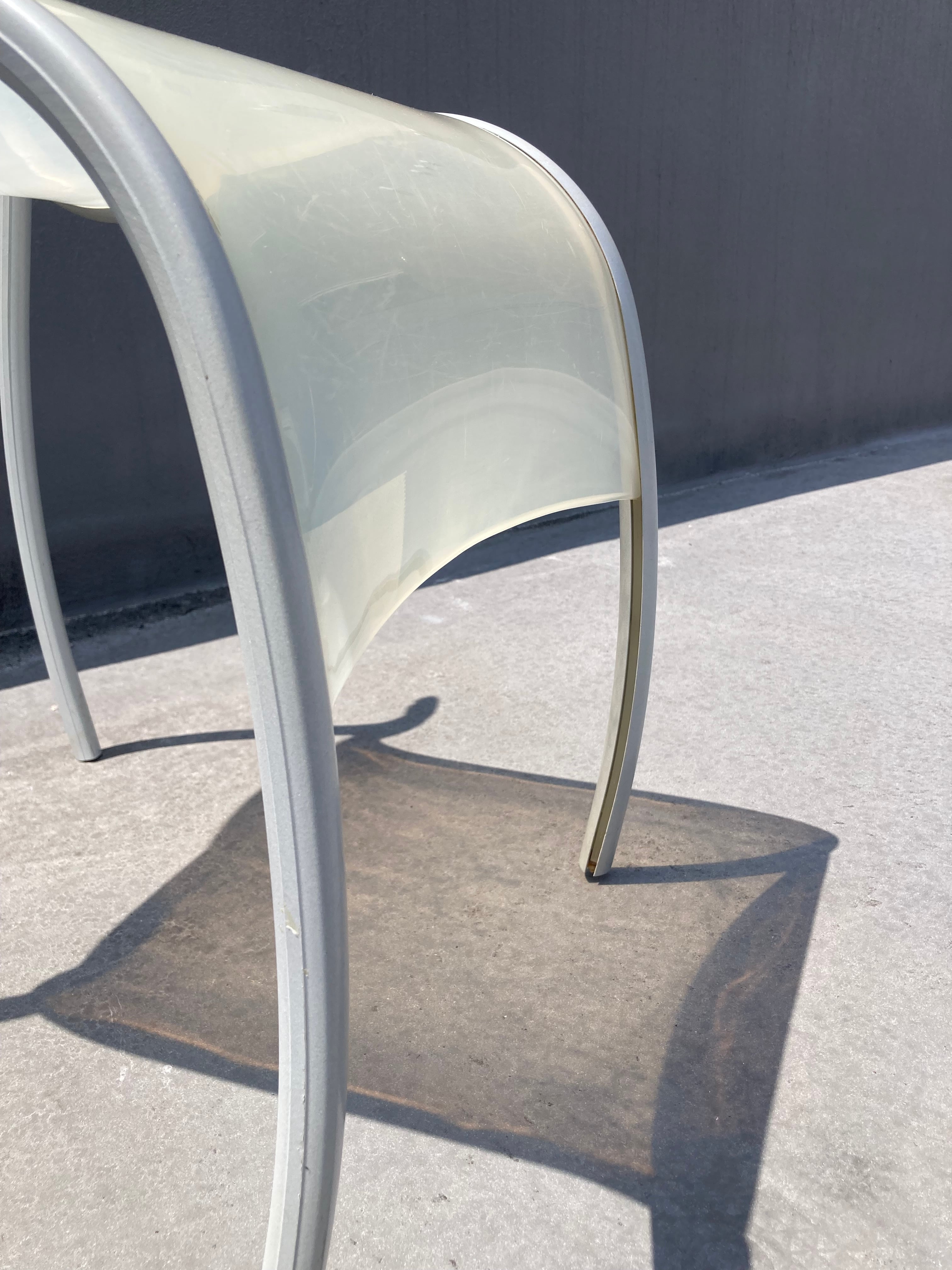 柔らかに波打つラインと、透明感のある素材が特徴的な一脚。光を透過することで影までもデザインの一部となり、空間に軽やかさを与えてくれます。スタッキングも可能で、実用性と造形美を兼ね備えたポストモダンの名作チェアです。