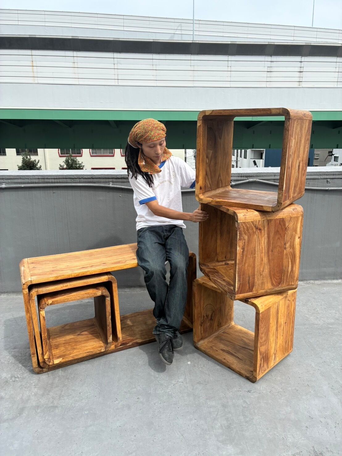 ドイツ発インテリアブランド KARE の「Authentico」シリーズ。無垢材の質感を活かしたシンプルかつ存在感あるデザインで、サイドテーブルやシェルフ、ディスプレイ台として多用途に活躍します。現在は 廃盤モデル となっており、複数組み合わせることで空間に独自のリズムを生み出す希少なアイテムです。