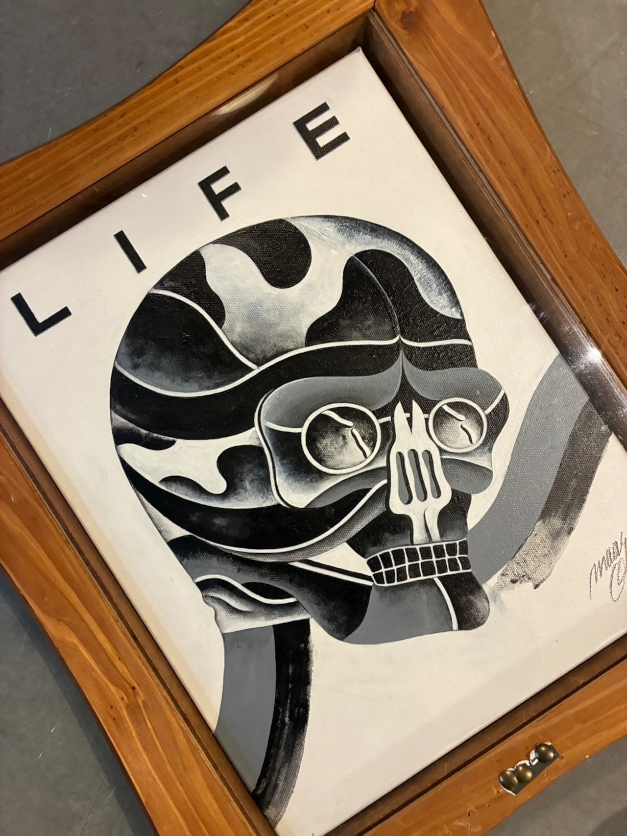 Vintage Rhombus Wooden Frame Oil Painting “LIFE Skull”