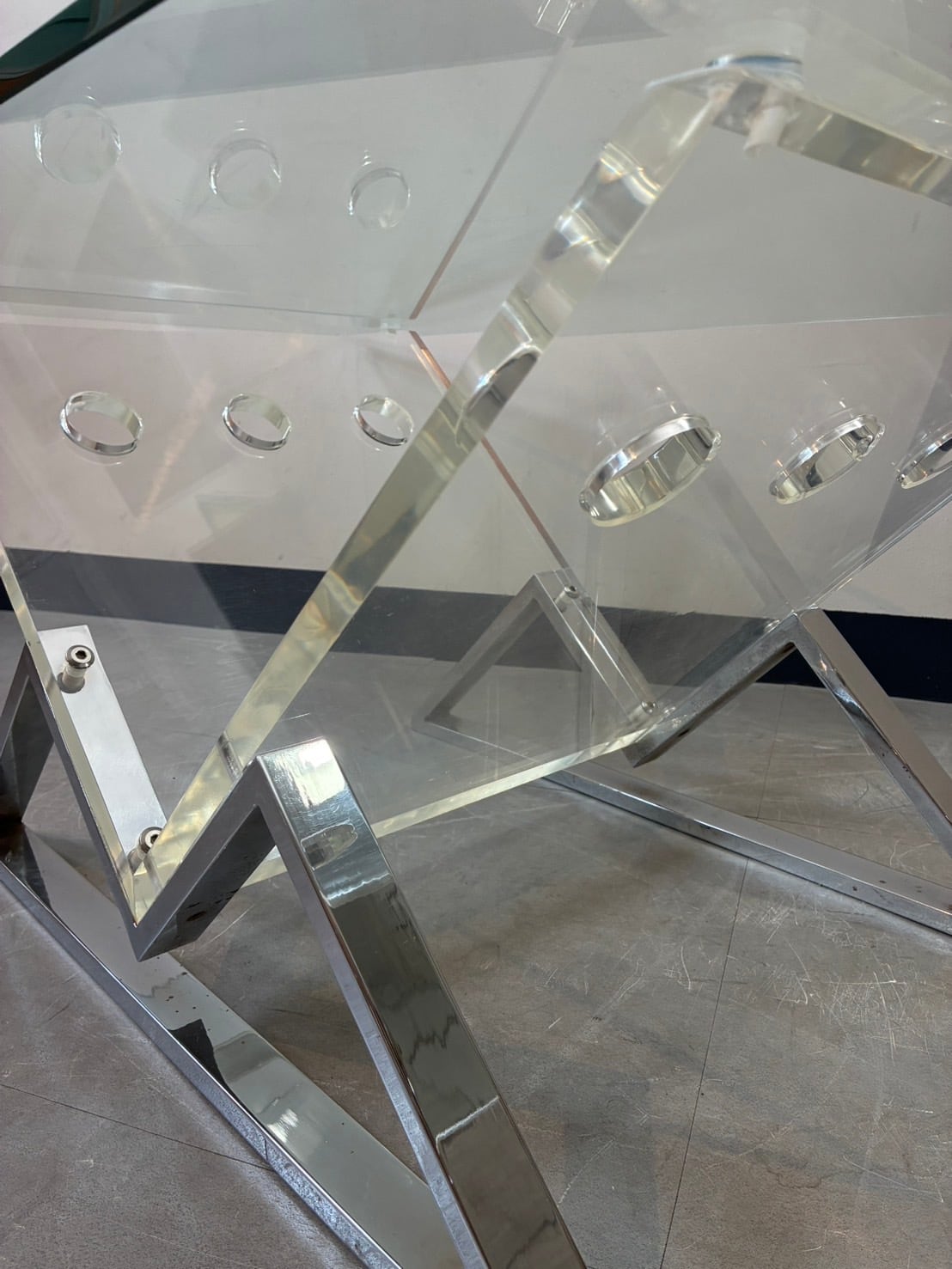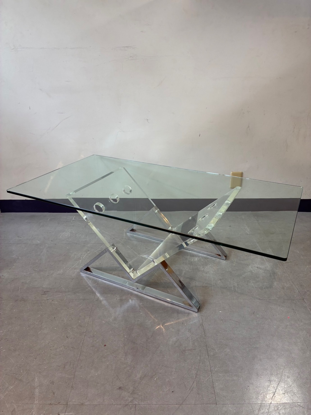 70–80’s Vintage Acrylic & Metal Legs Glass Table