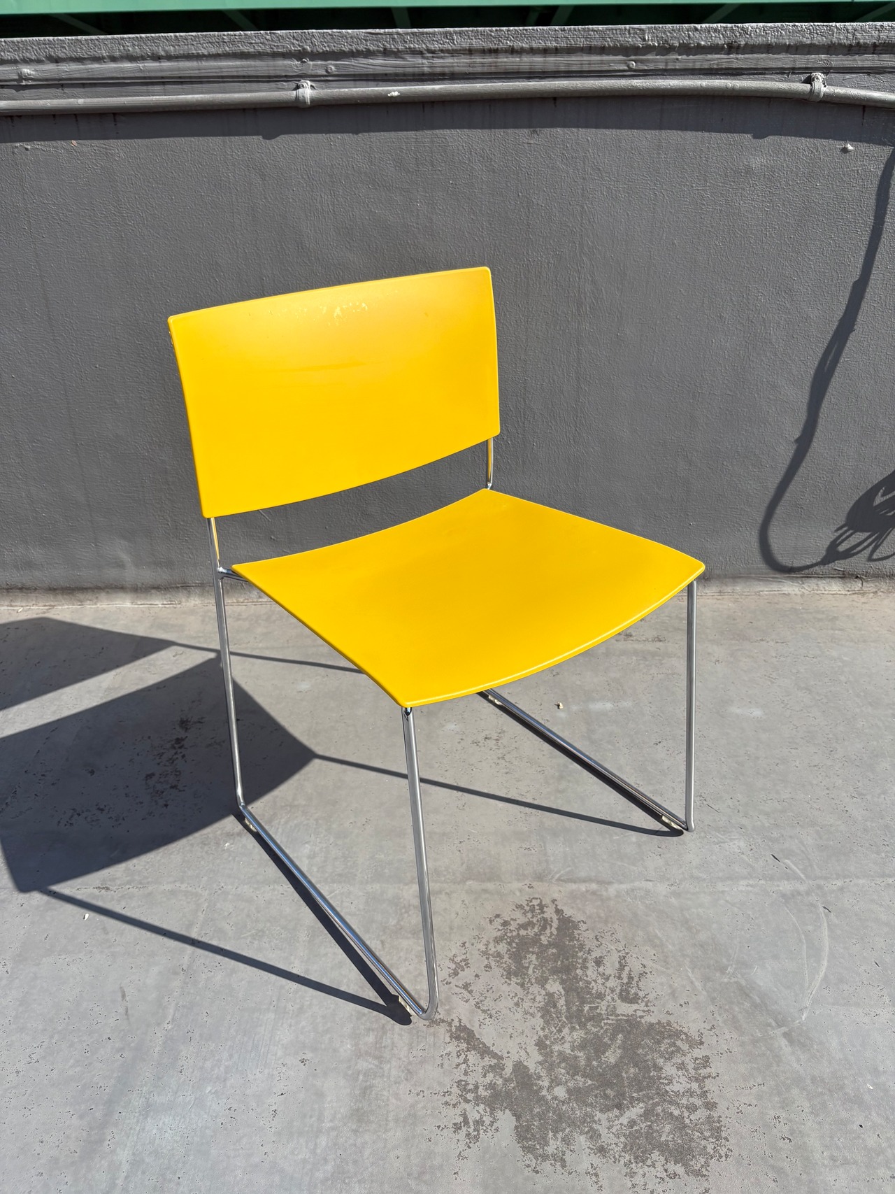スペインを代表する家具ブランド Andreu World による、軽やかなスタッキングチェア。無駄を削ぎ落としたデザインは空間の中で主張しすぎず、しかし鮮やかなイエローが確かな存在感を残します。
