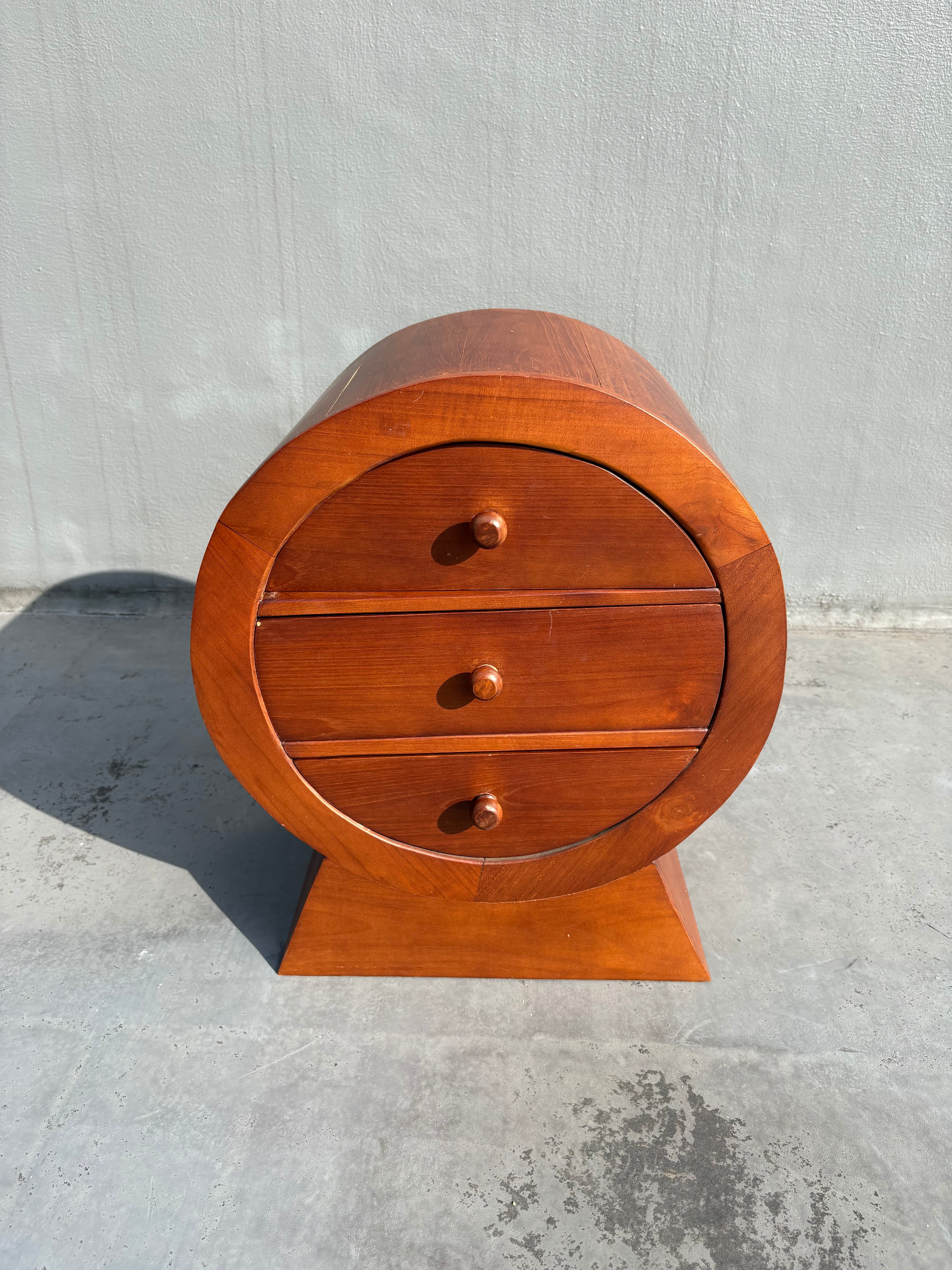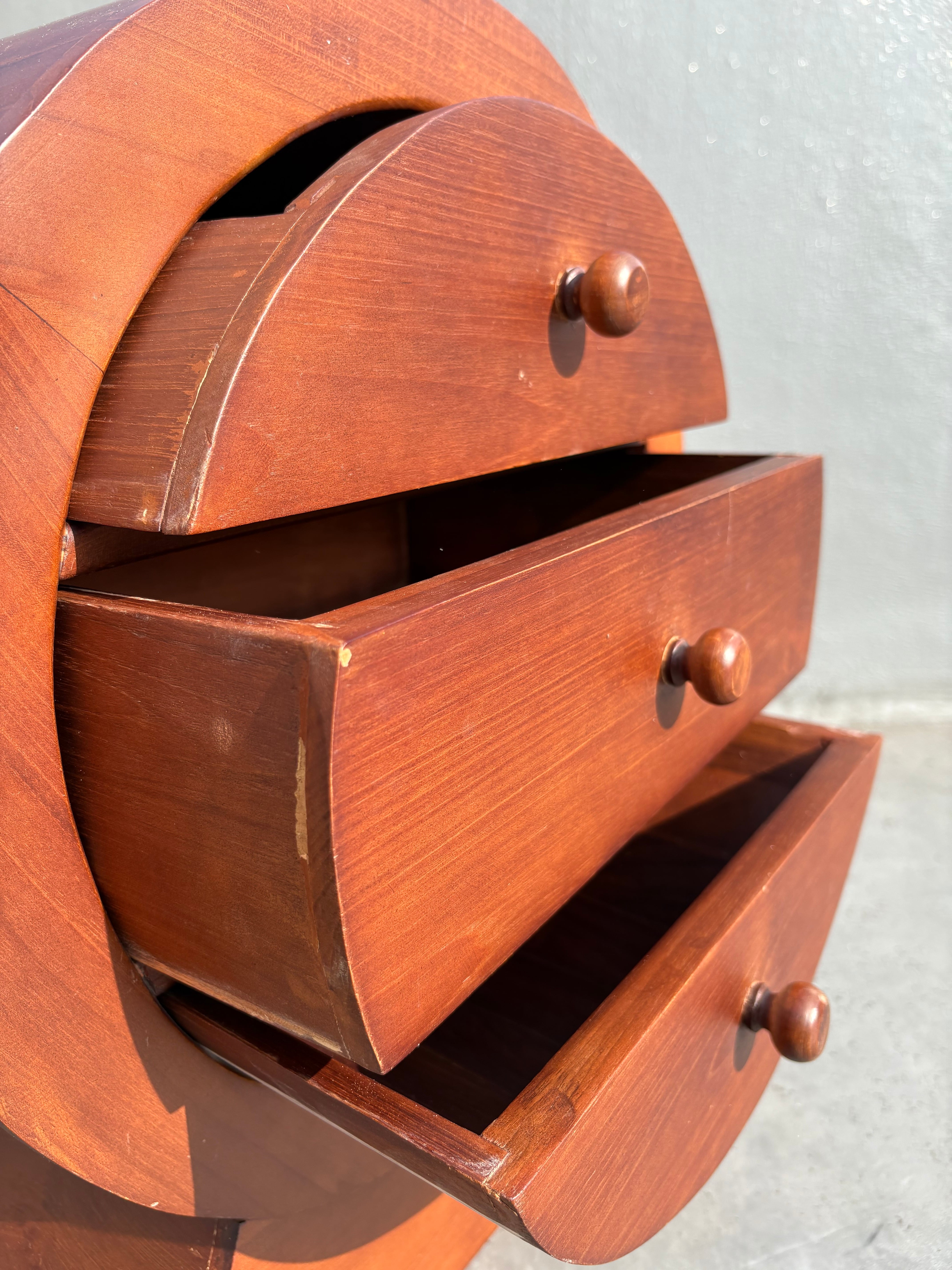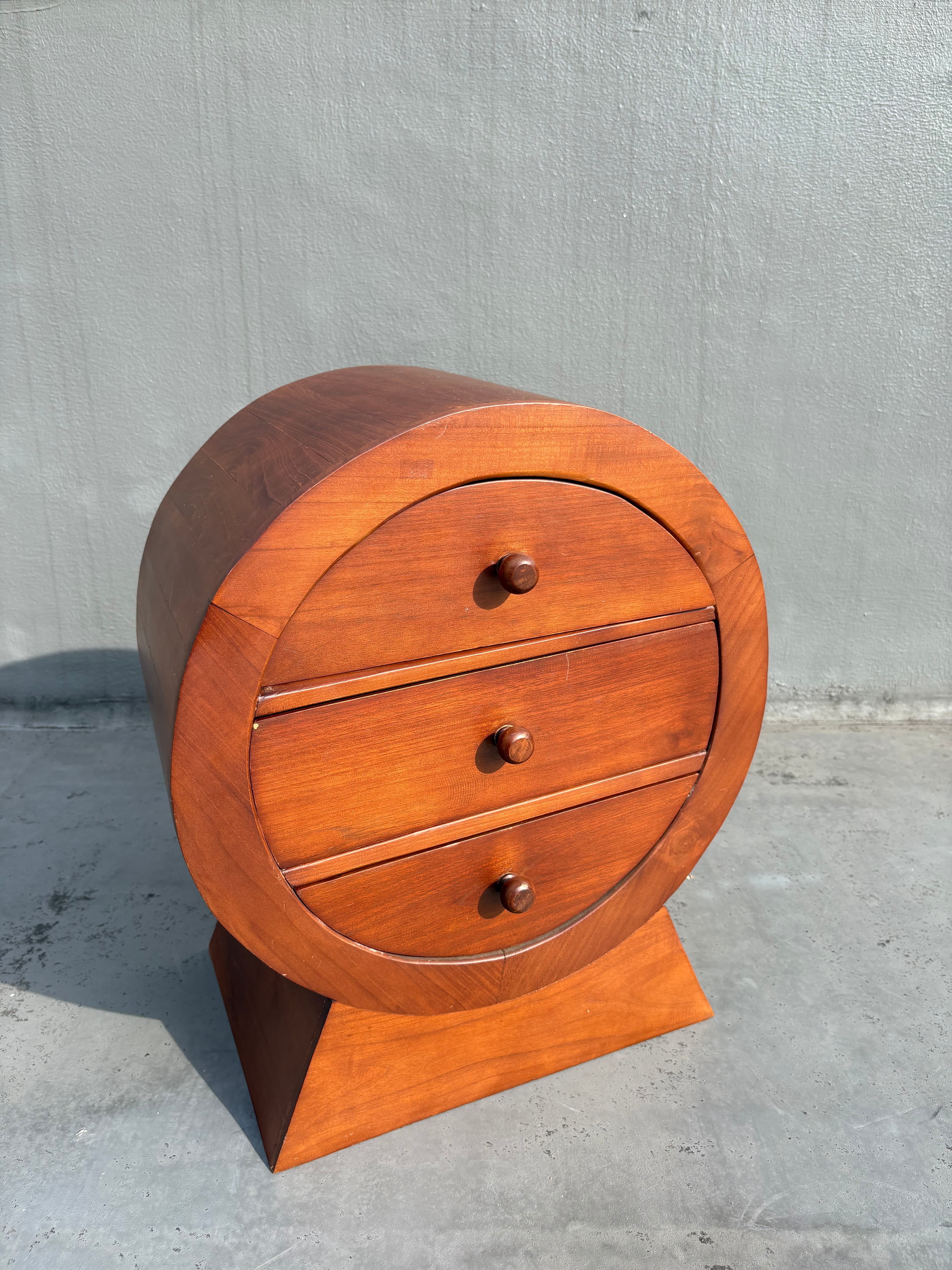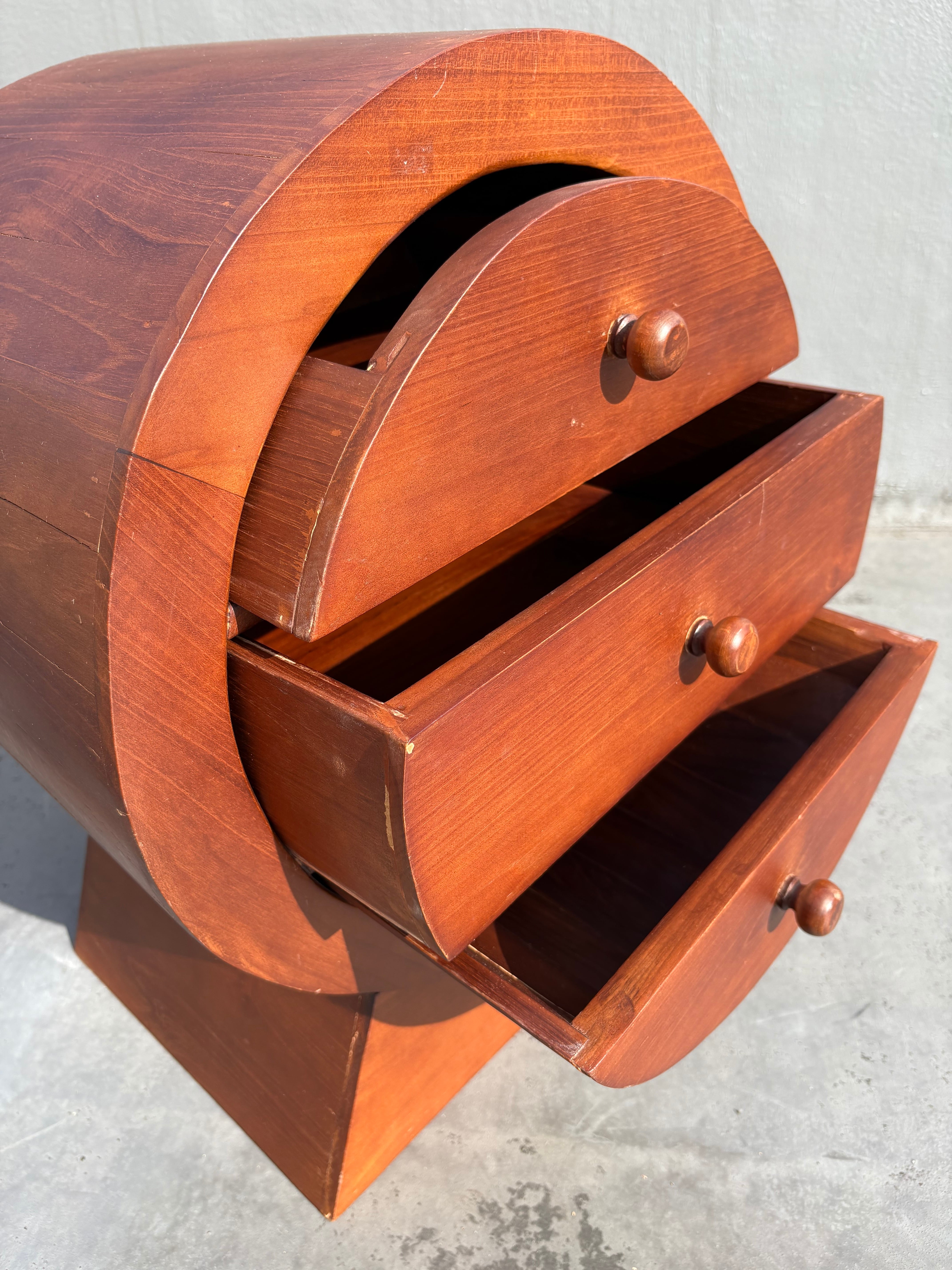 円筒形のフォルムが特徴的なヴィンテージ3段チェスト。