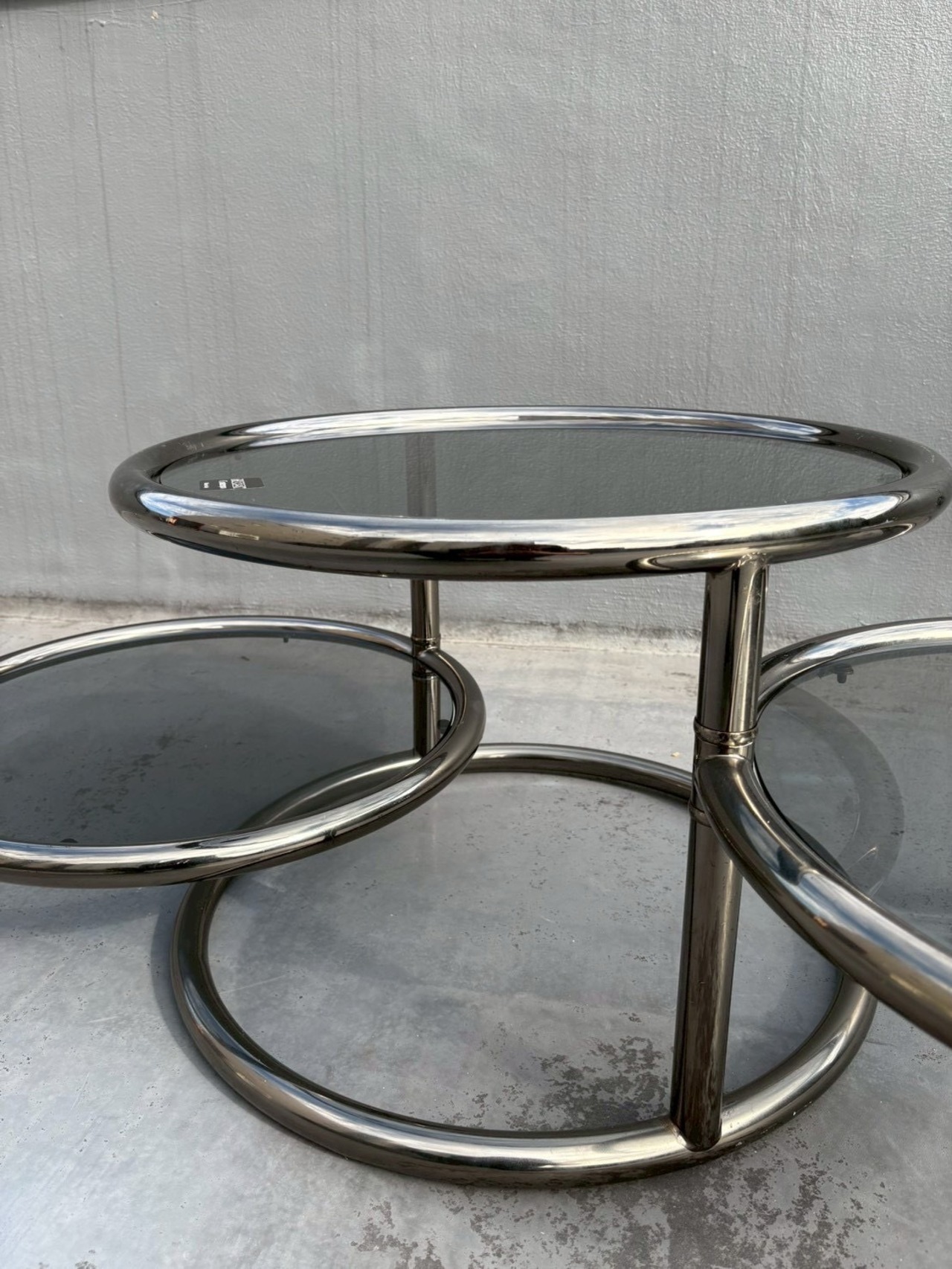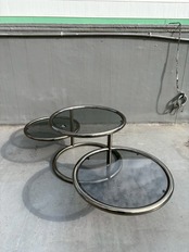 70’s Vintage MOREX Contempo Post Modern 3-tier Round Smoked Glass Table designed by Milo Baughman Made In ITALY
