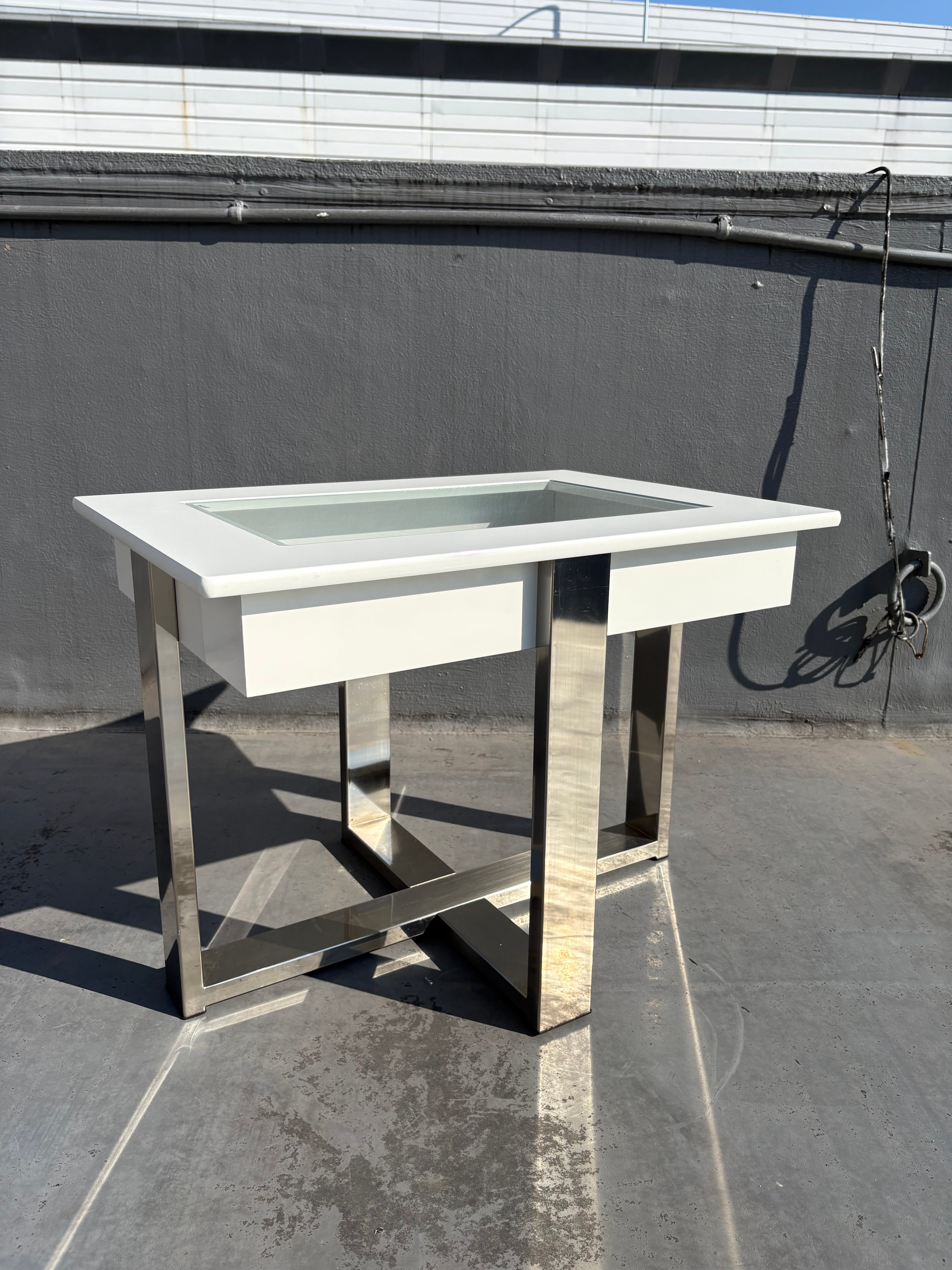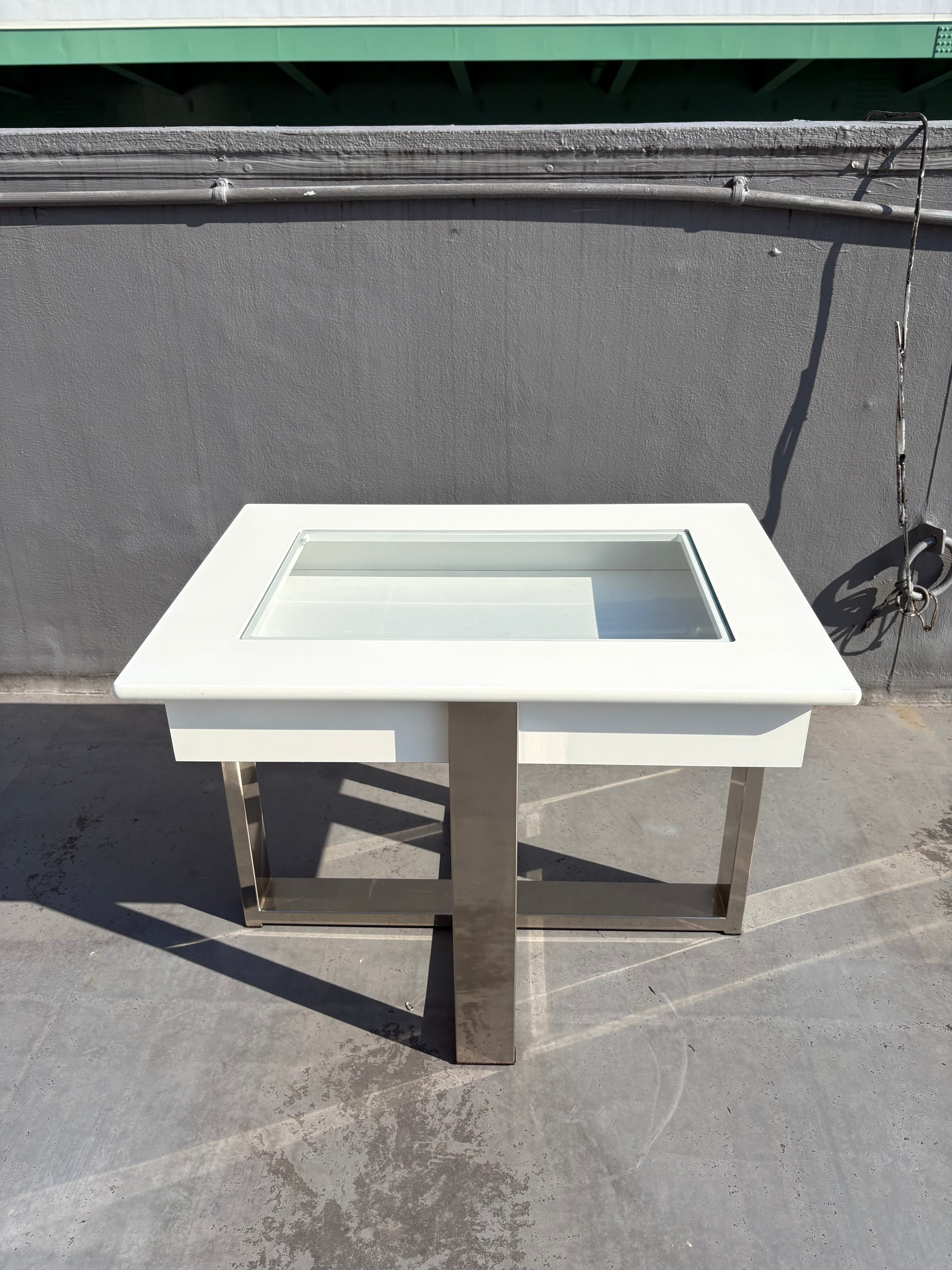 十字に交差する脚から生まれる立体感のあるテーブル。