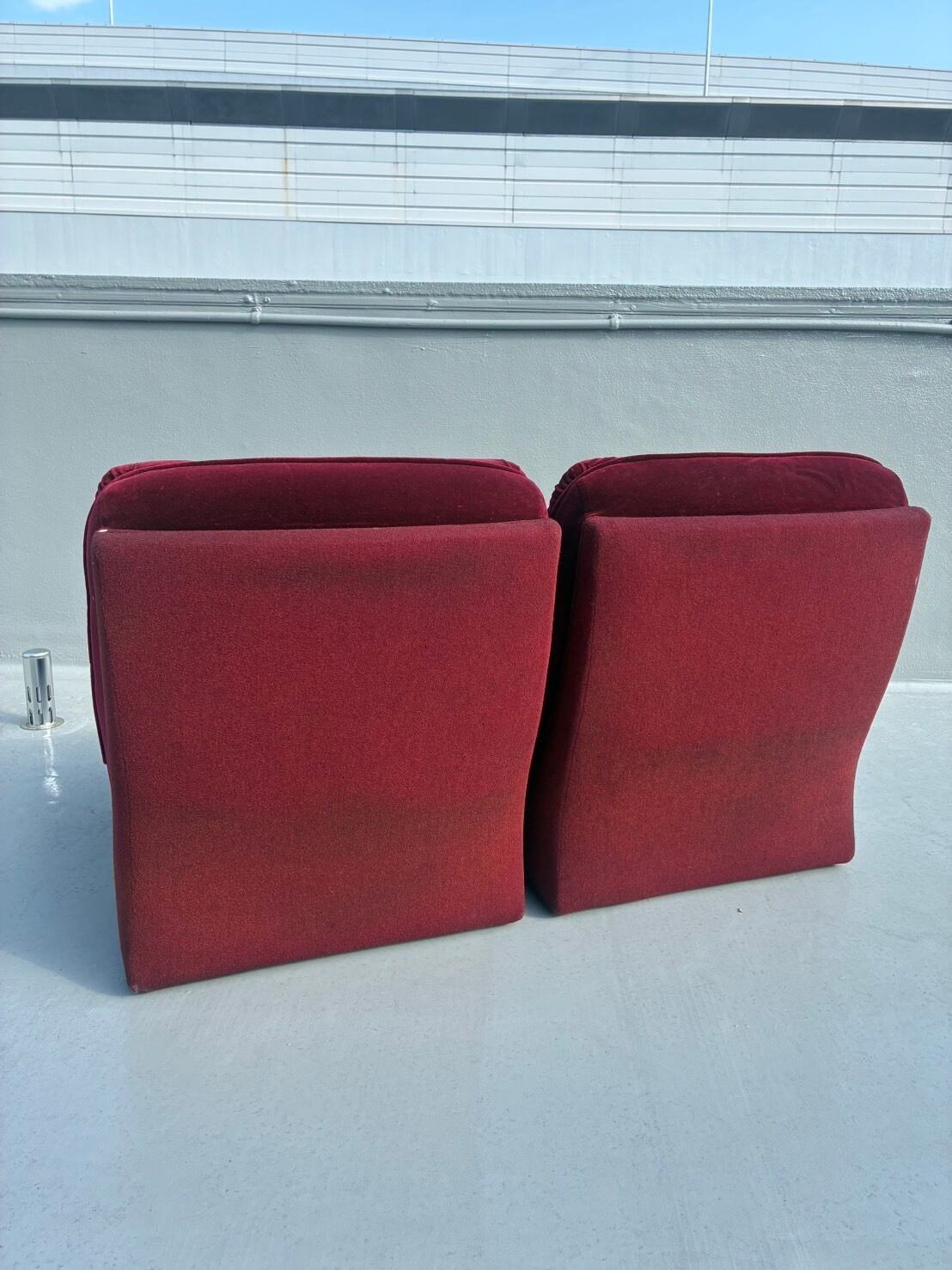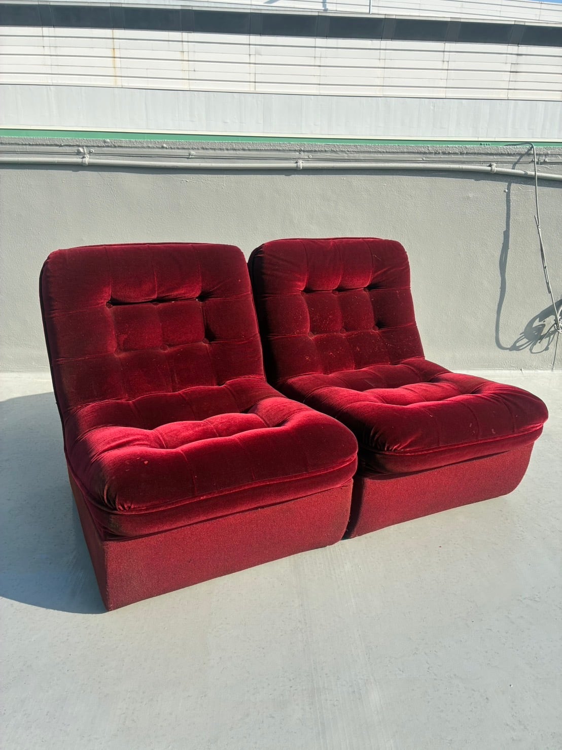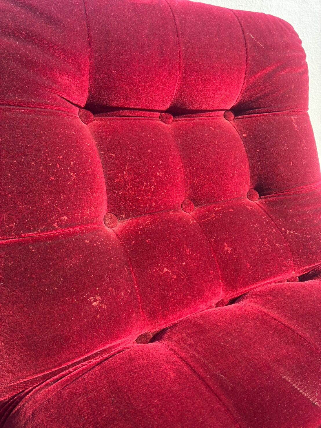 70-80's Vintage Scarlet Velour Lounge Sofa
