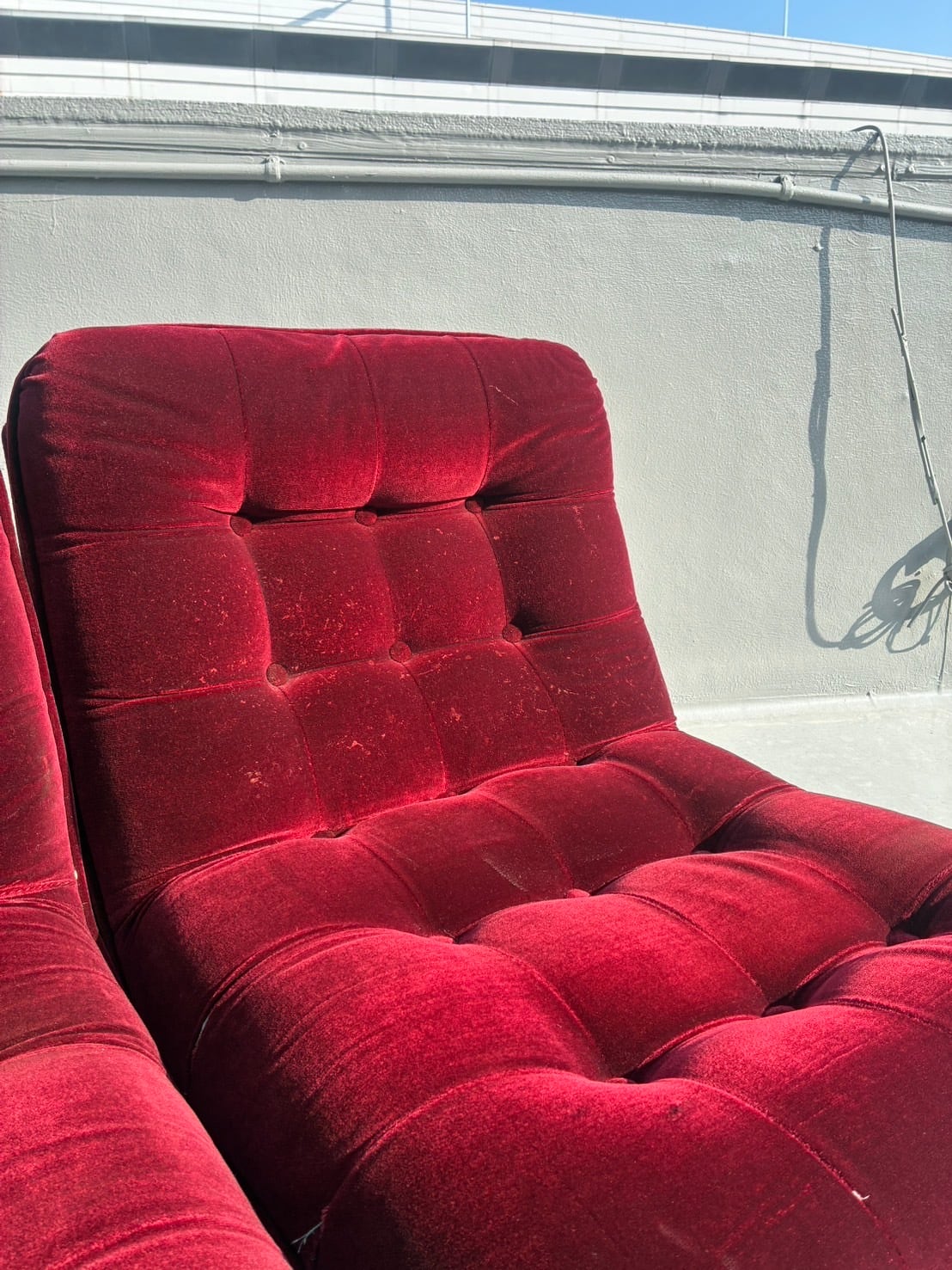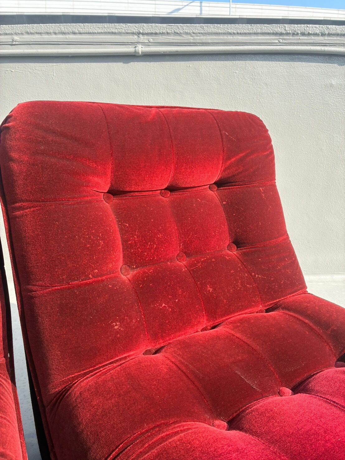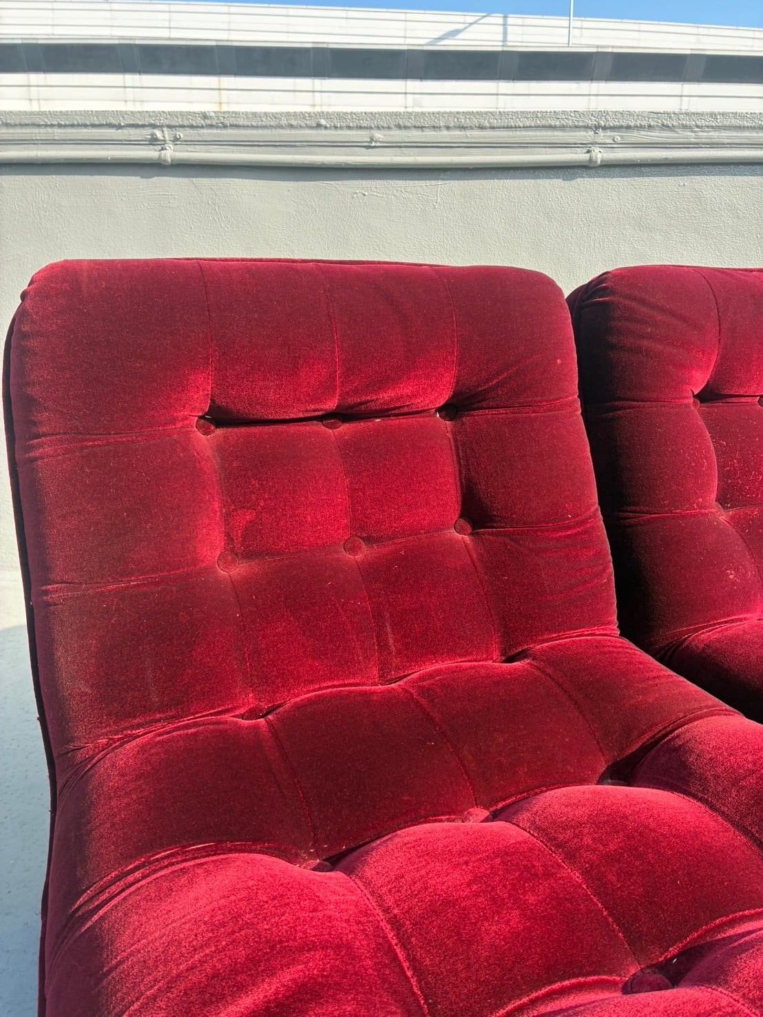 70-80's Vintage Scarlet Velour Lounge Sofa