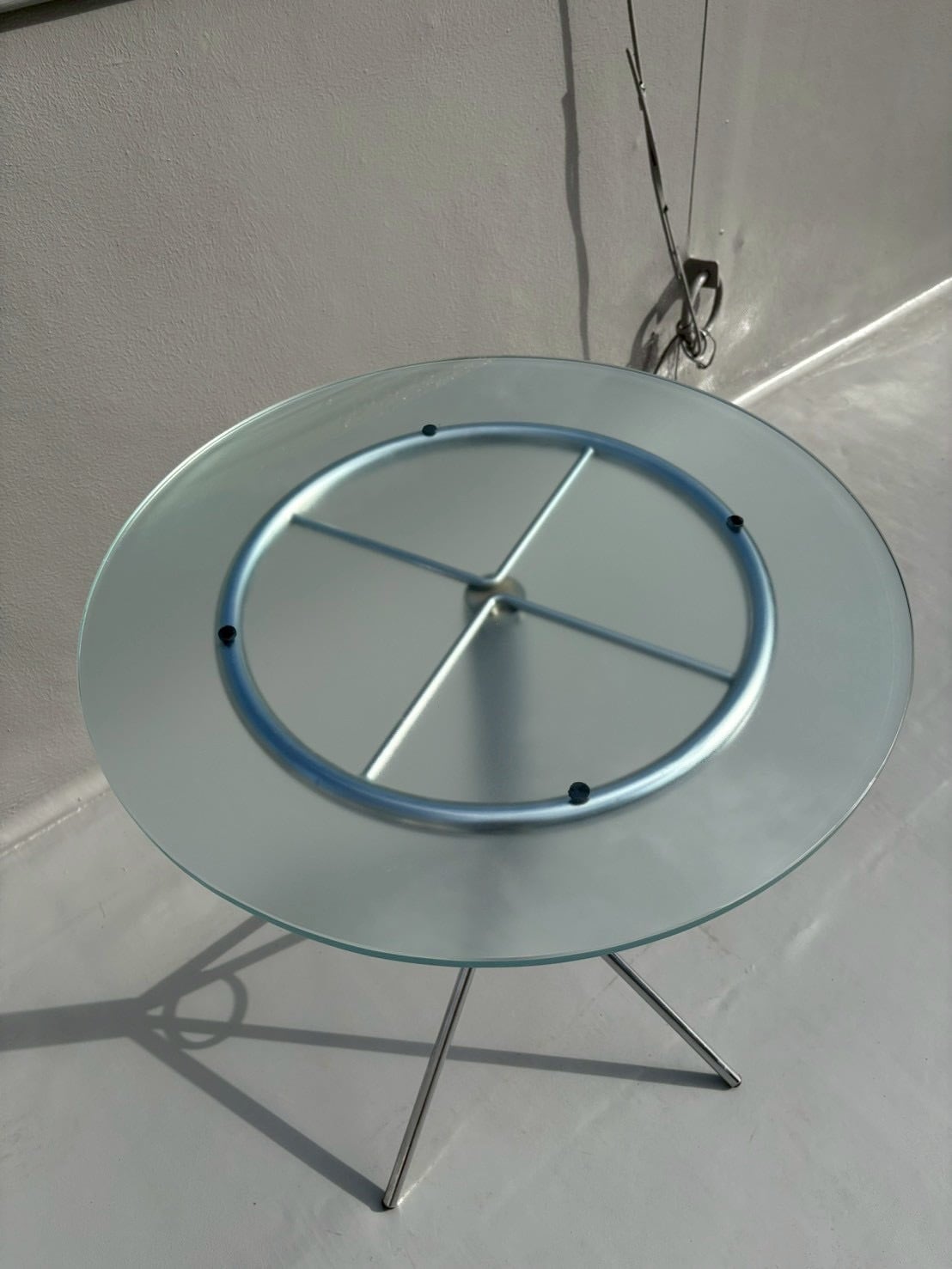 Used Steel Leg Frosted Glass Top Table
