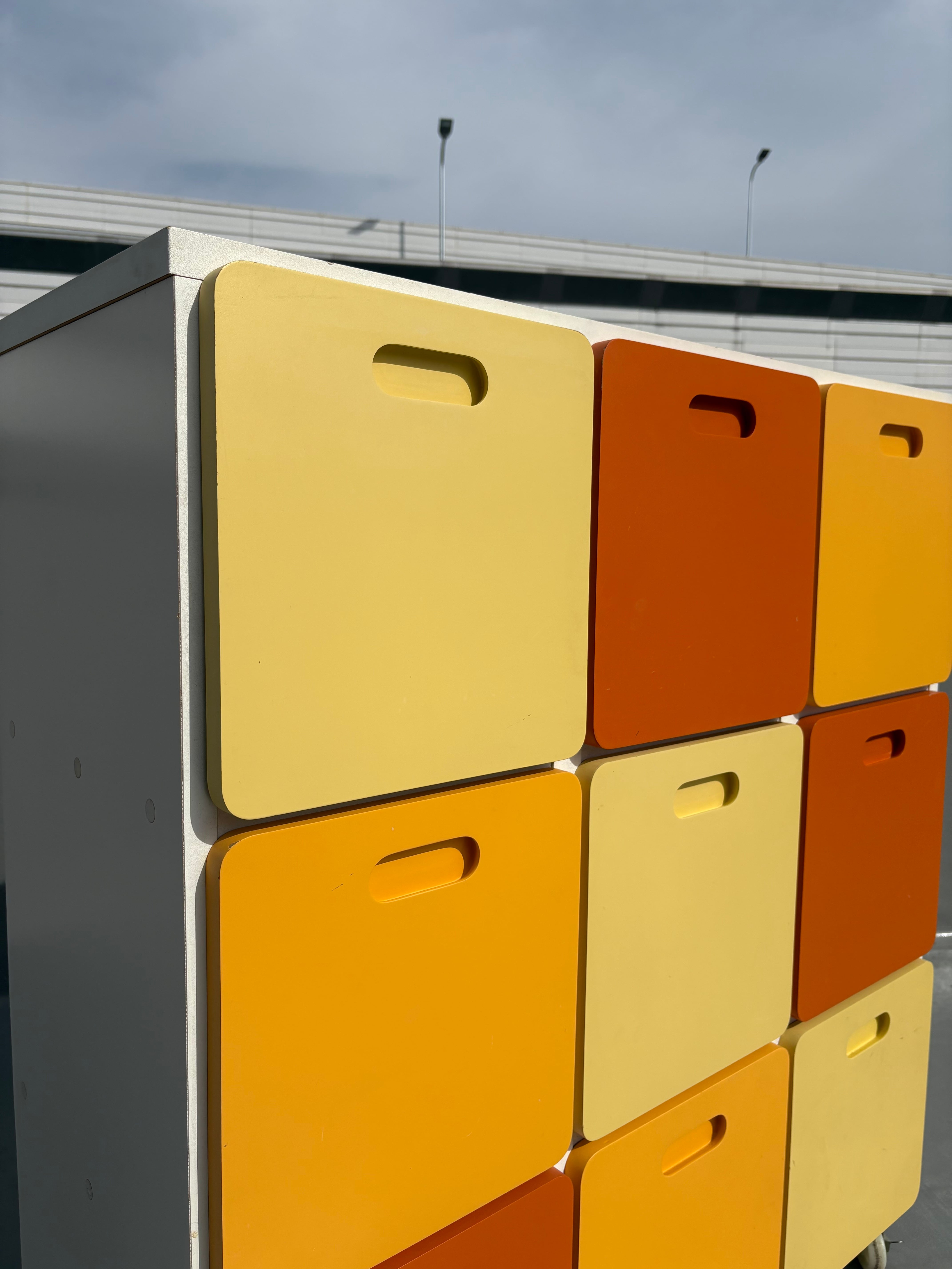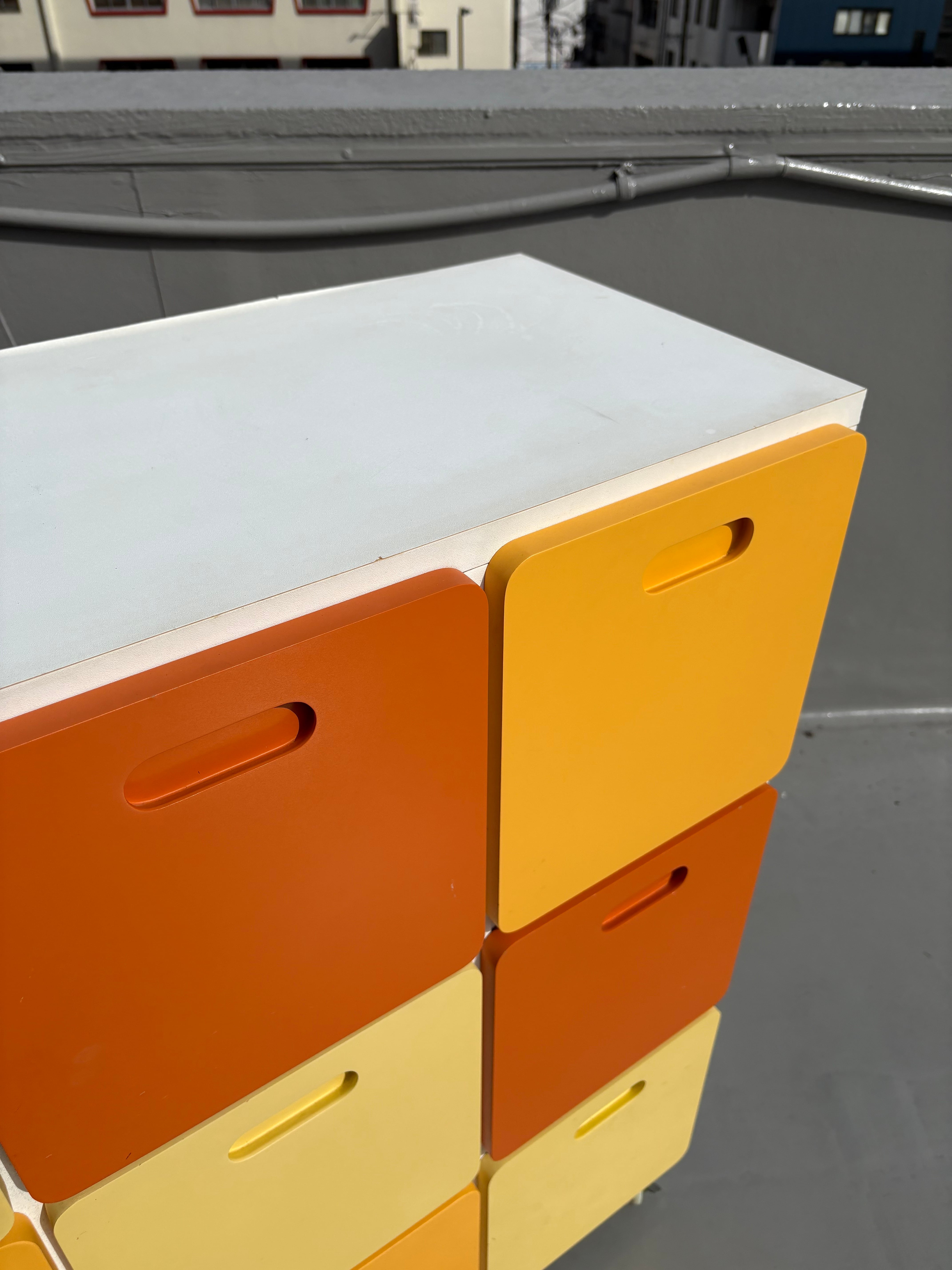 ポップなグラデーション配色が目を引く、マルチドロワーキャビネット。