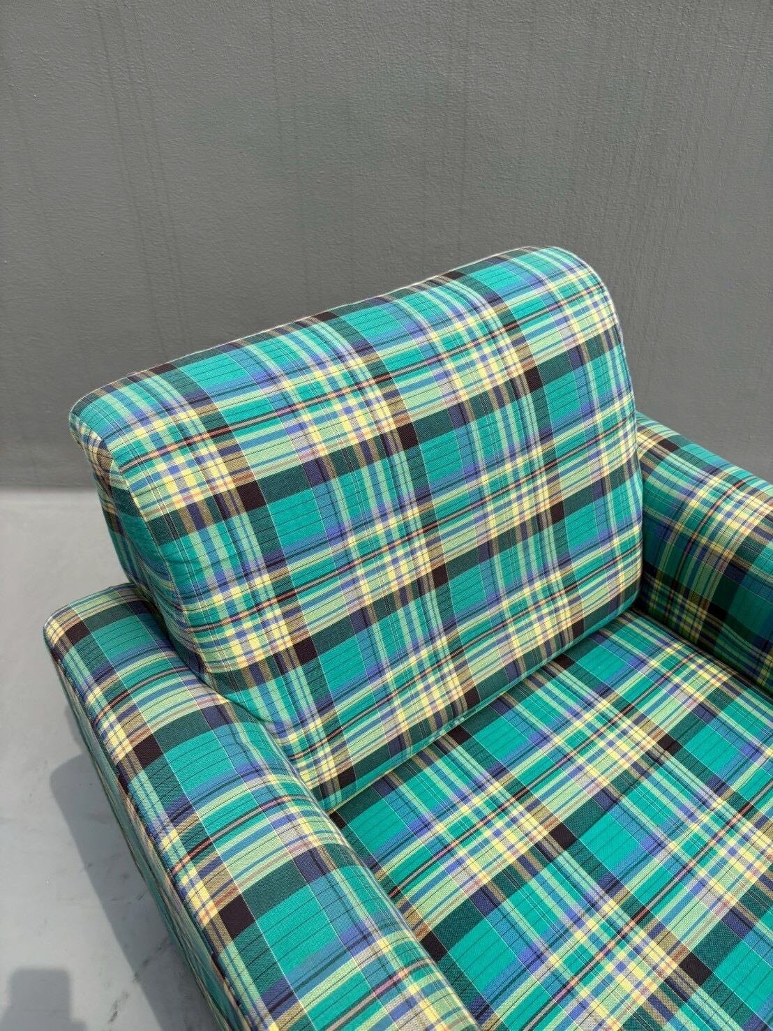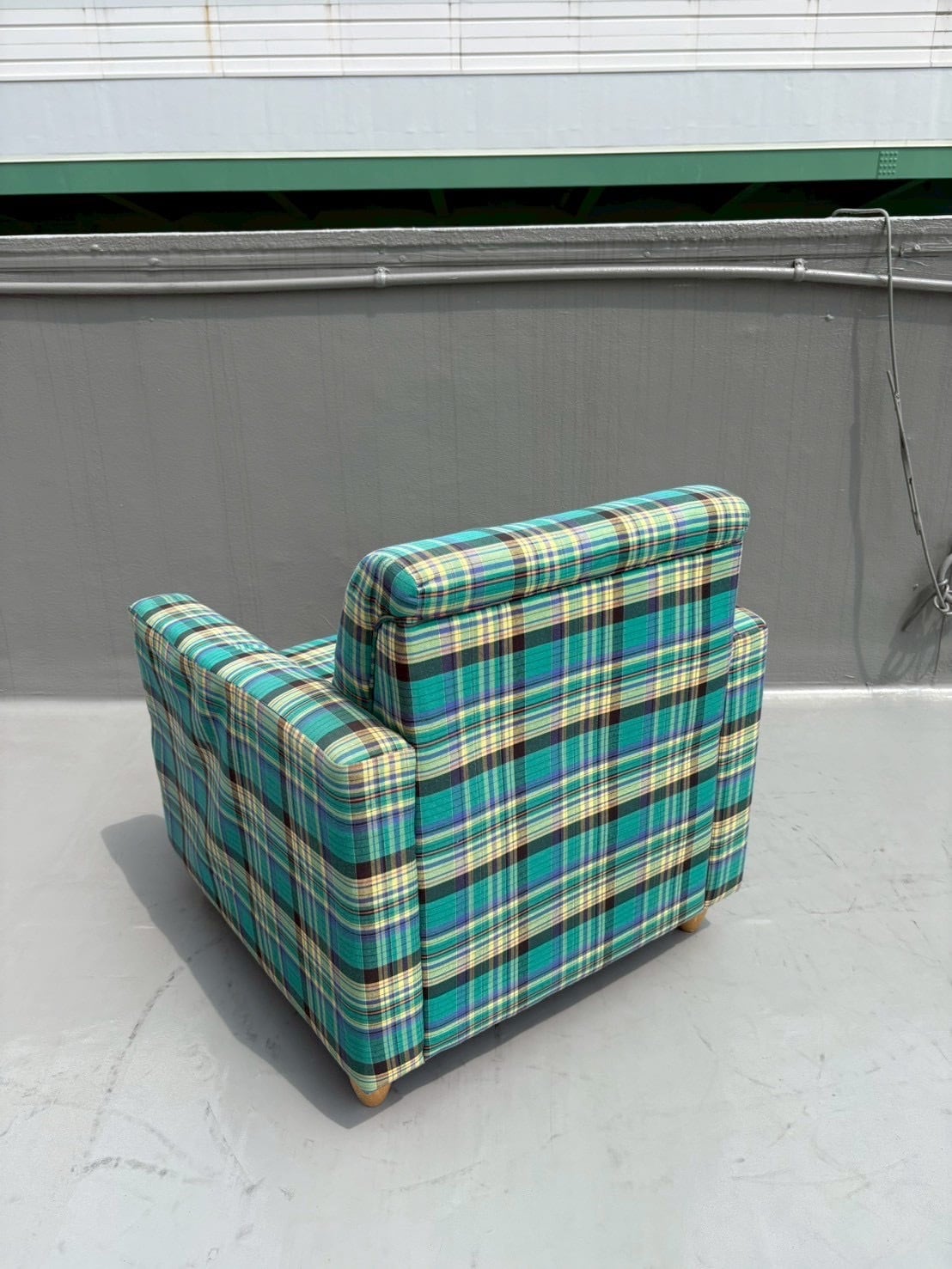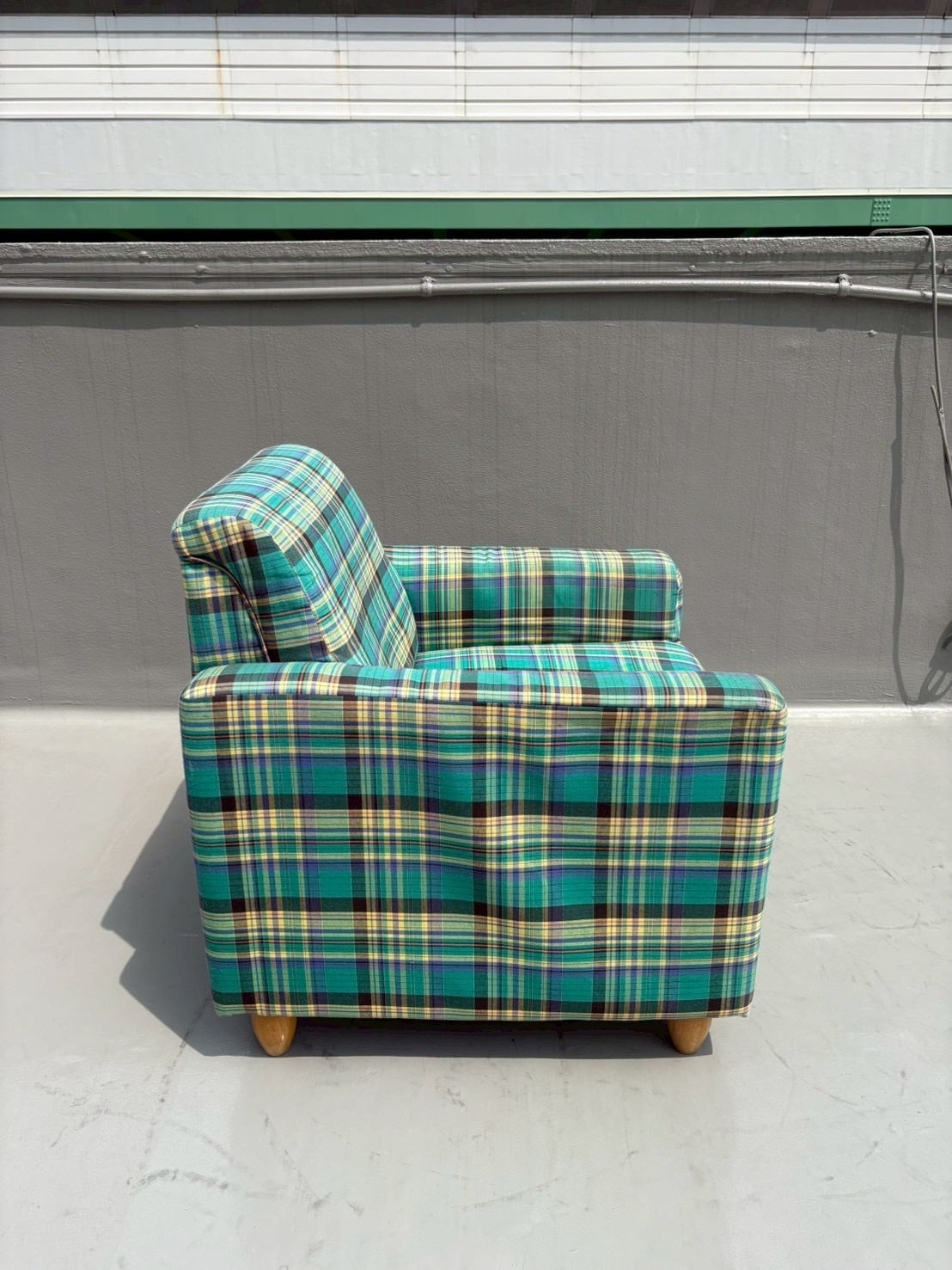爽やかなグリーンベースが目を引くタータンチェックの1pソファ。
