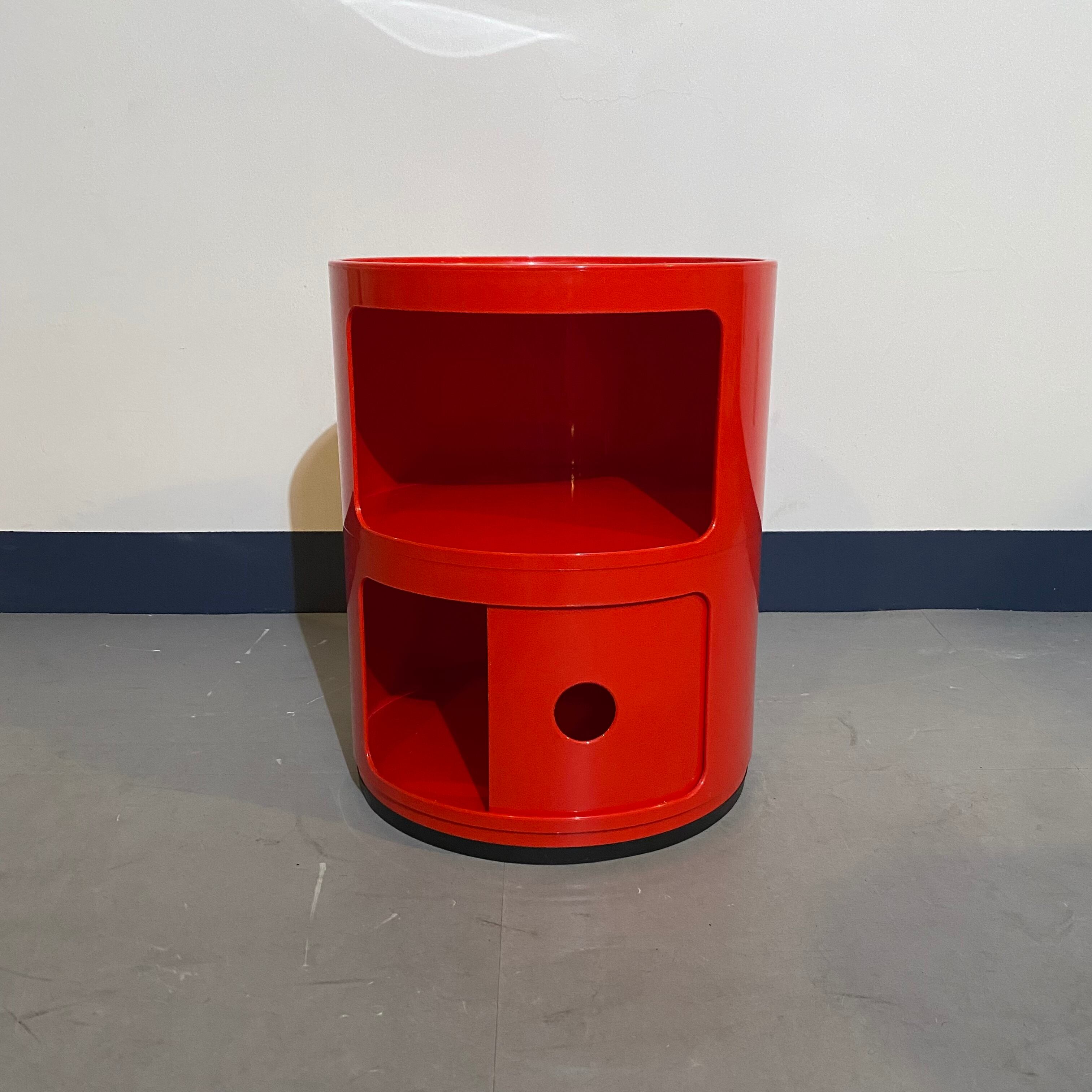 Used Anna Castelli Ferrieri for Kartell Italian Space Age Componibili Two Cylindrical Modular Cabinets in Red Made In Italy