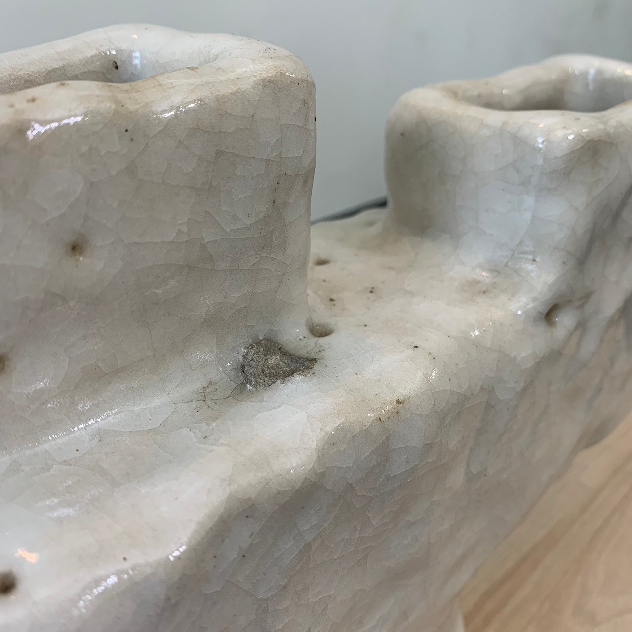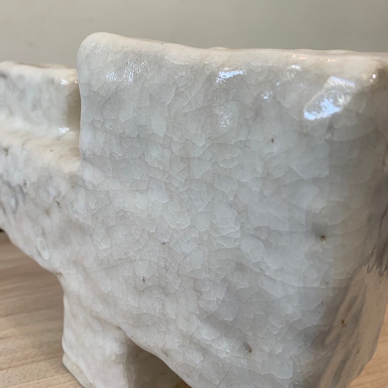 かなり抽象的。一見花瓶には見えない。部分的に石が剥き出しの部分もあり恐らく素人作品ですが謎の引き込まれる雰囲気を醸し出す一品。