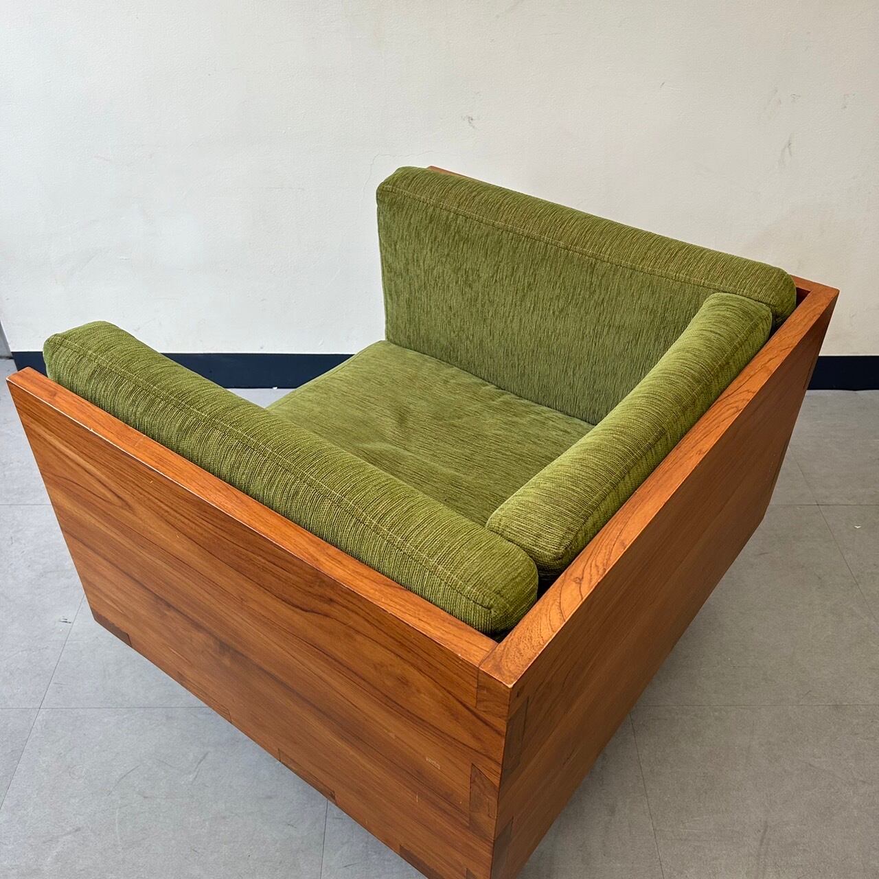 北欧ミッドセンチュリーを意識したボックス型のシンプルなフォルムが純粋にカッコいい。座った時にすっぽりとハマる感じが病みつきになります。チーク材もしっかりとした杢目のモノがチョイスされ柔らかな印象のファブリックとのバランスが大変良いソファとなっております。