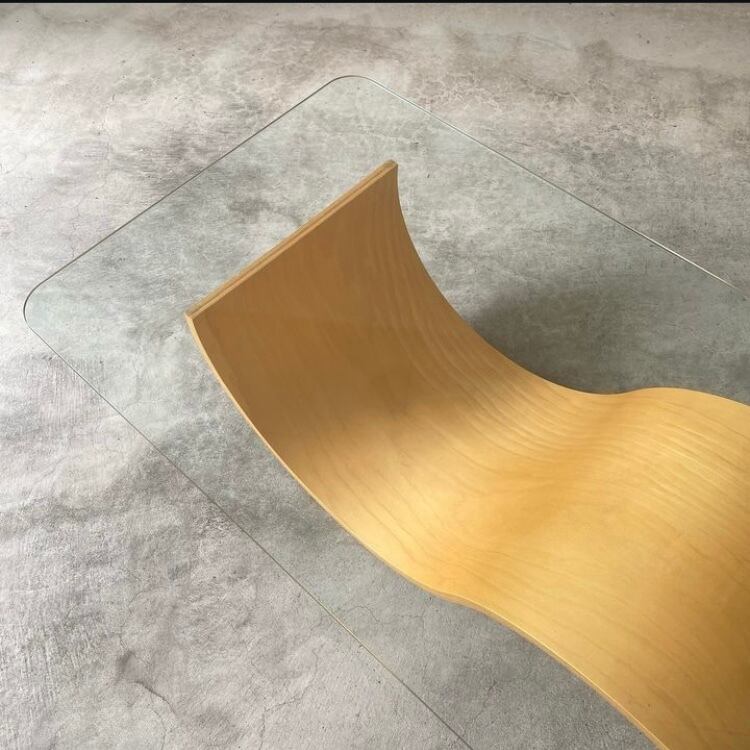 ※GlassTop Wave Wooden Leg Table