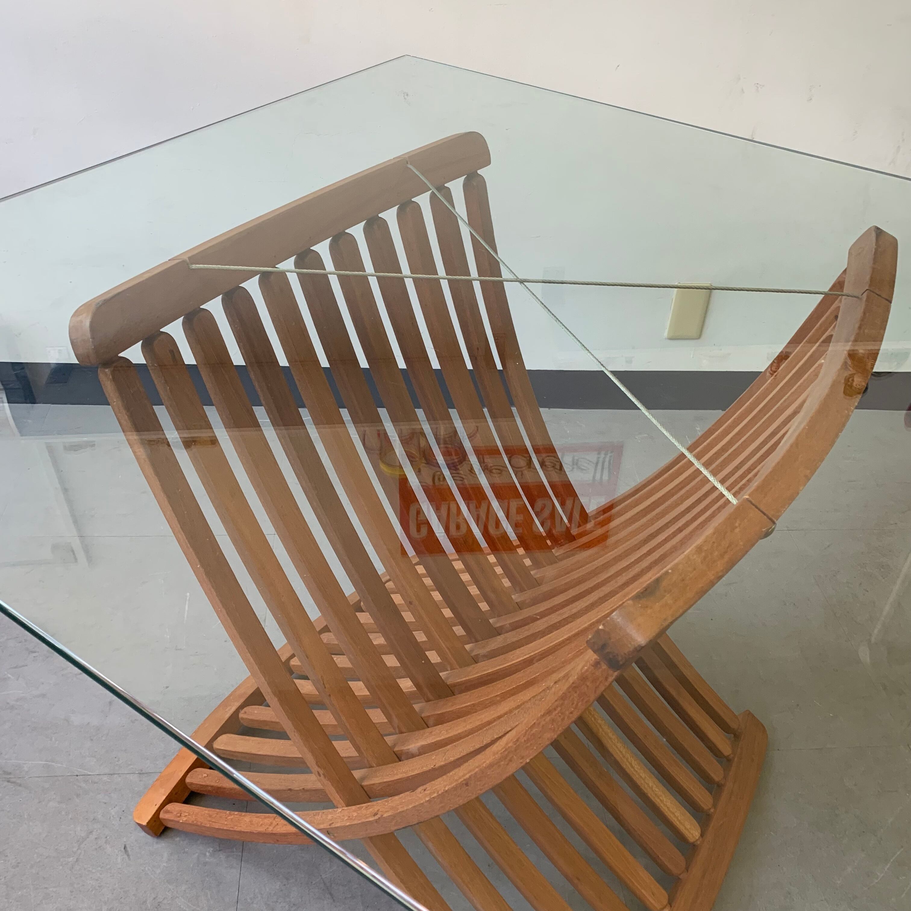 ※Vintage Wooden Leg Glass Top Table Created by Unknown
